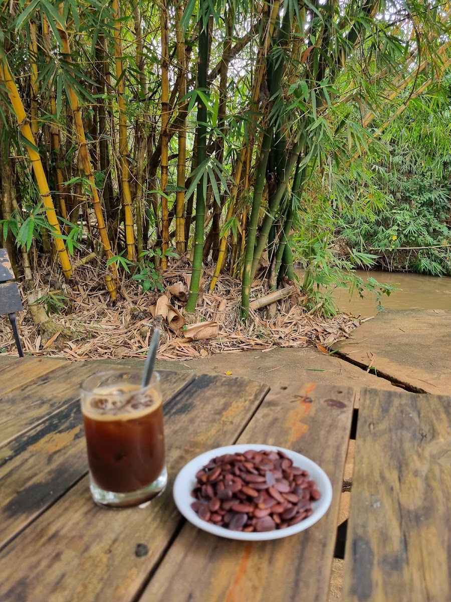 The menu highlights focus on classic local favorites like coffee with cocoa and coffee with iced milk, catering to those who appreciate straightforward but well-crafted drinks. The space leans into a casual, nature-infused vibe, making it popular among people looking to chill out, work quietly, or catch up with friends without the usual cafe rush. Outdoor seating amidst the greenery complements the weather well—especially on dry, overcast days typical of the region.